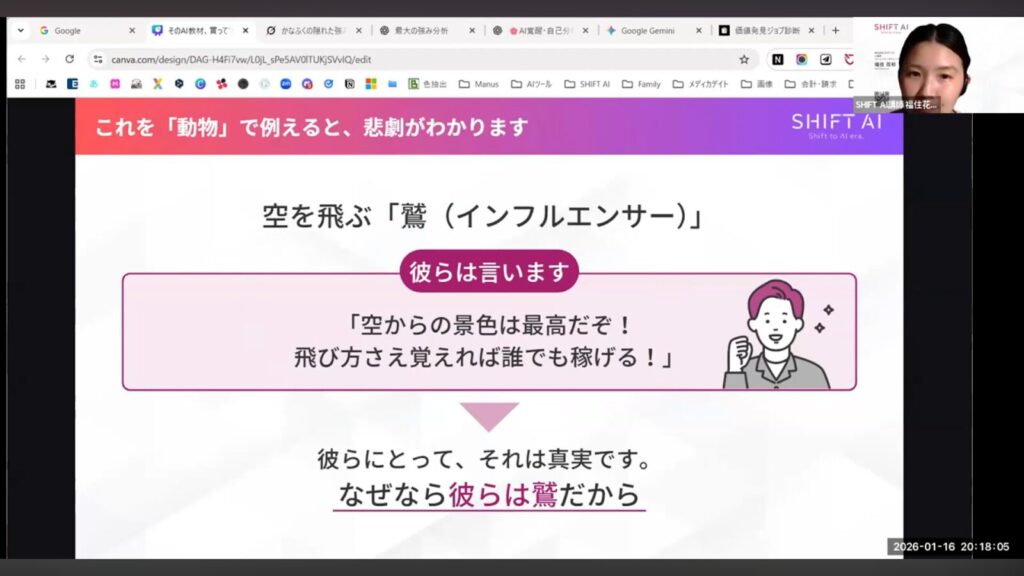今回は、利用者数No.1*のAI活用コミュニティ「SHIFT AI」で開催された会員向けオンラインウェビナー「マネタイズ初心者必見 才能を商品化!埋もれた学びが販売に変わる 初級」の内容の一部を特別公開します。