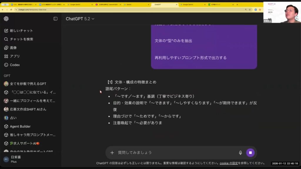 ※ウェビナー本編では、安藤講師が実際に2万文字以上の記事を分析した際の実演や、さらに踏み込んだ「クライアントを感動させるプロンプトの記述方法」についても公開されています。