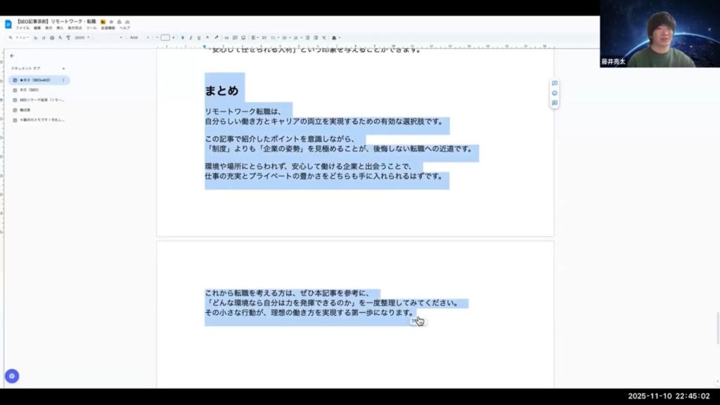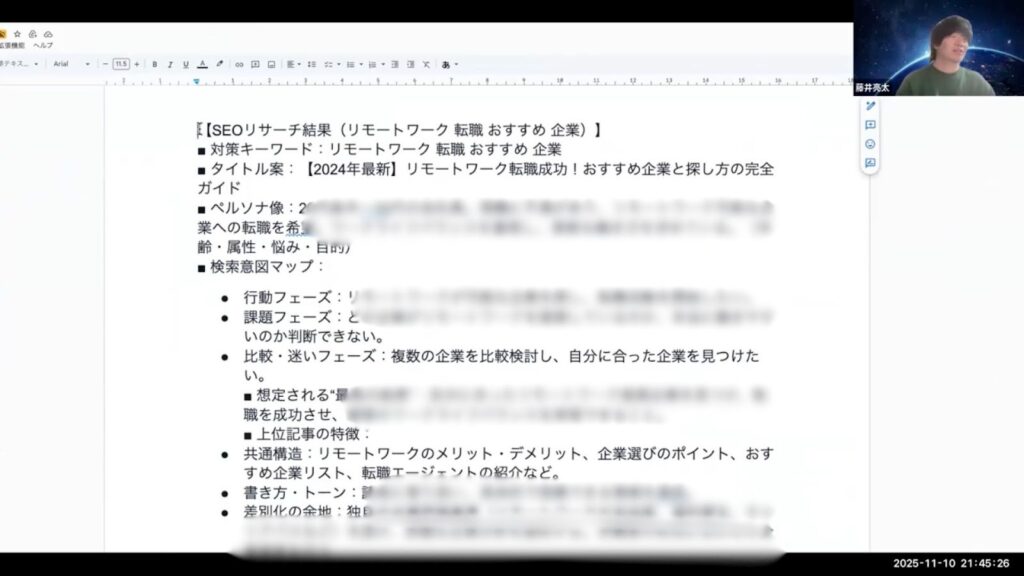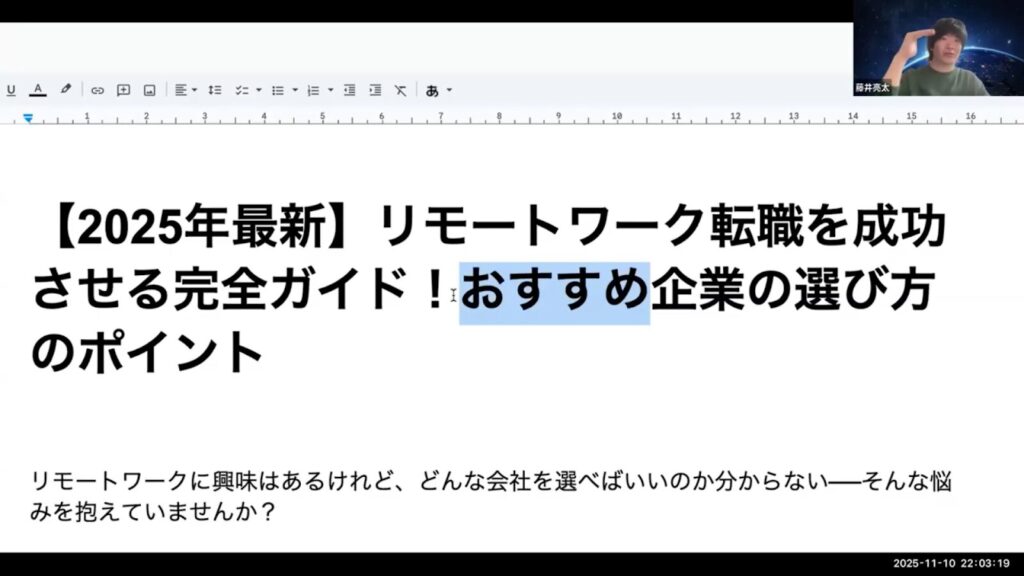 実際の添削会では、キーワード選定のズレが記事全体の構成にどう影響するかについて、より詳細な議論が行われました。